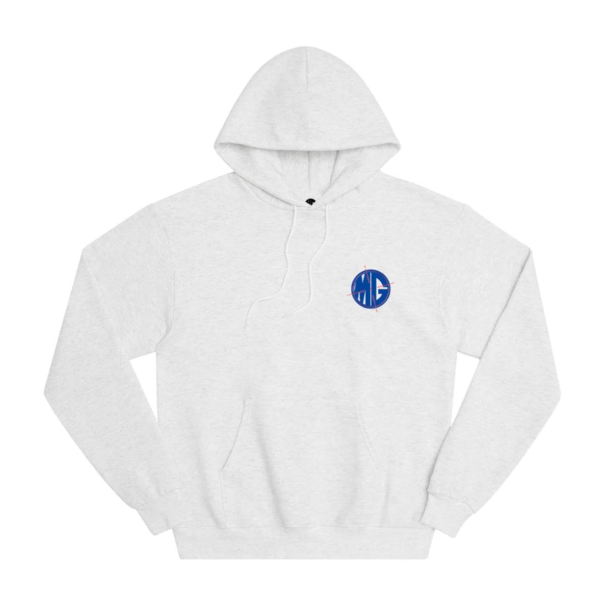 Sudadera con capucha en color gris jaspeado de 280 g/m² con estampado en el pecho y en la espalda.